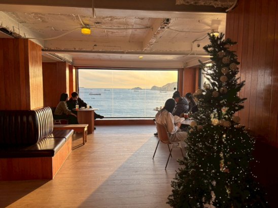 海が見えるおしゃれカフェにもツリーは継続中です🎄